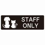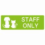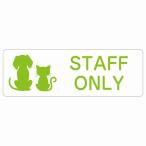 動物イラスト付 STAFF ONLY ホワイト ブラック グリーン ブラウン 27x9cm 長方形 サインステッカー シール 屋外 屋内 防水 おしゃれ 動物病院 老犬ホーム 犬 猫 ネコ ドッグラン 動物園 ペットショップ ペット マナー お願い 獣医