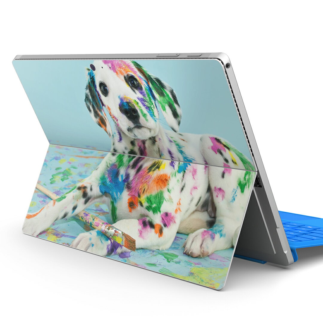 Surface pro7 (2019) pro6 pro2017 pro4専用スキンシール Microsoft サーフェス 写真 カラフル ペンキ 犬 インク 008181