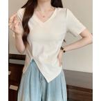 tシャツ アシンメトリーヘムVネックTシャツ レディース