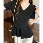 tシャツ アシンメトリーヘム 半袖Tシャツ / フリル袖デザイン カットソートップス レディース