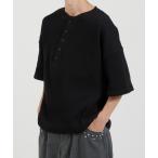 tシャツ アシンメトリーカットオフヘンリーワッフルTシャツ メンズ レディース