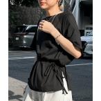 tシャツ サイド シャーリング アシンメトリー デザイン トップス レディース