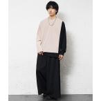 tシャツ 「MinoriTY」梨地素材アシンメトリーバイカラーロンTセットアップ 長袖Tシャツ+袴パンツ メンズ オーバーサイズ ルーズフィット 春服