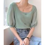 tシャツ 「25秋冬新作」リボンニットトップス スクエアネック秋服 レディース