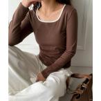 【限定!20%OFFクーポンで2399円】ワイドリブカットソーレーストリムスクエアネックトップス レディース 春 夏 リエディ トップス Tシャツ カットソー スクエアネック 長袖 リブ レイヤード 細見え シンプル インナー レイヤード レース