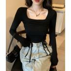 tシャツ スリムアップ スクエアネック レースアップ ロンT/スタイルアップ 韓国 レディース