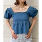 tシャツ 「デニム×オフショル風」レディース ペプラムプルオーバー パフスリーブ フェミニン 春夏秋 レディース