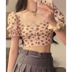 tシャツ 小花柄パフスリーブミニマム丈トップス レディース