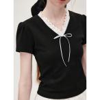 ブラウス シャツ ボウタイ付きVネックパフスリーブブラウス レディース