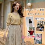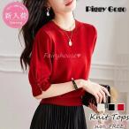 ニットTシャツ レディース 40代 春夏 半袖ニットソー オシャレ 無地パフスリーブ ニットトップス ショット丈カットソー 大人 通勤OL Tシャツインナー 韓国風
