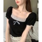 【48%OFF 2,500→1,300円/NEW ARRIVAL】Tシャツ カットソー パフスリーブ ドット 柄 テレコリブ バレエコア レディース フェミニン 大人 かわいい インナー レイヤード レディース 体型カバー 韓国 リボン SS AW 春 夏 秋 冬 mt07211[moment+/モーメントプラス]