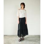 【シップス ウィメン】〈手洗い可能〉レース コンビ パフ スリーブ 半袖 Tシャツ