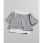 tシャツ フェイクレイヤード/ラインストーンTシャツ/Y2K可愛いトップス レディース