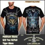 クリスチャンオードジェー Tシャツ メンズ 半袖 プラチナ タイガー/黒 Christian Audigier ラインストーン オードジェイ 5004