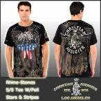 クリスチャンオードジェー Tシャツ メンズ 半袖 国旗&ロゴ/黒 BOCBBDZC Stars & Stripes/ラインストーン オードジェイ Christian Audigier 5007
