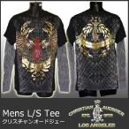 クリスチャンオードジェー Tシャツ メンズ 長袖 丸首 箔鷹ロゴ鱗/黒 ブラック BIAKJVHS ラインストーン仕様 Christian Audigier 5012