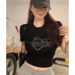 tシャツ 「きらロゴ×短丈」レディース ラインストーン 半袖Tシャツ Y2Kストリート 春夏秋 レディース