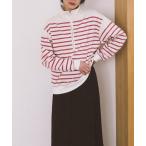 tシャツ ボーダー柄ハーフジップースウェット-手洗い可- レディース