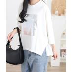 tシャツ 箔プリント袖リブ長袖Tシャツ レディース