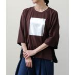tシャツ ボックス箔プリントロングTシャツ レディース