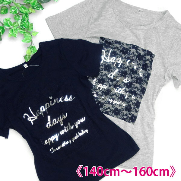 【メール便送料無料】レースの上にシルバー箔プリント 半袖Tシャツ《140cm 150cm 160cm 女の子 ジュニア》