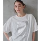tシャツ オーバーサイズ半袖ロゴフォト箔プリントTシャツ レディース