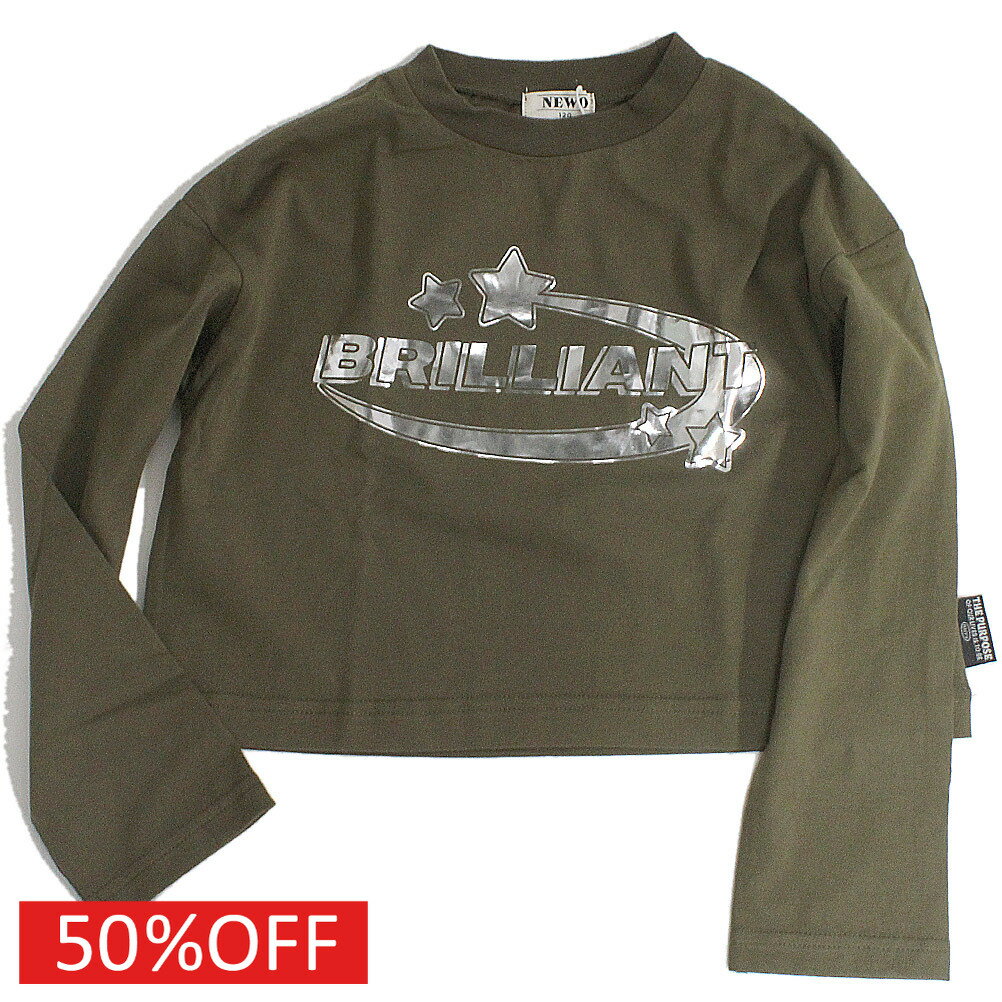 【ニードルワークス/ジュニア服/NEEDLEWORKS】 セール 【50%OFF】 【NeWo】レトロロゴショート丈Tシャツ カーキ