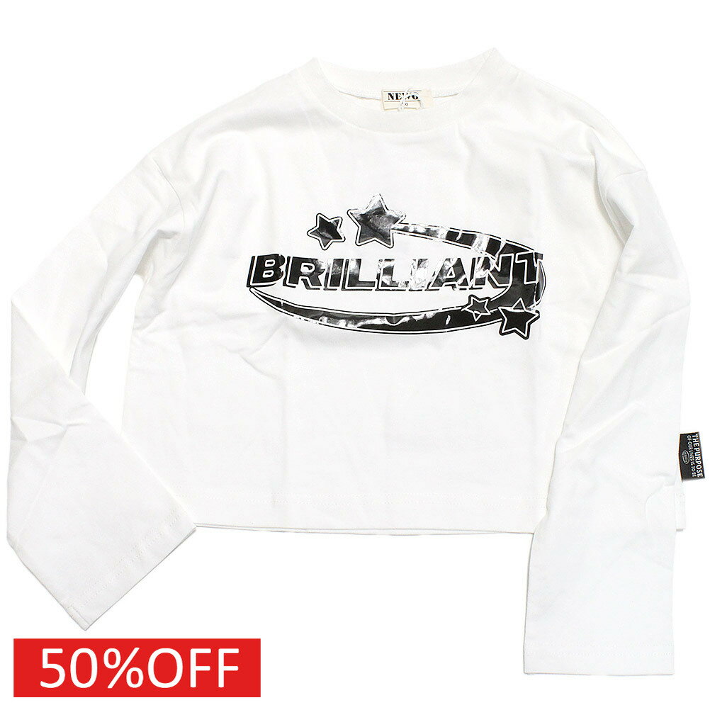 【ニードルワークス/ジュニア服/NEEDLEWORKS】 セール 【50%OFF】 【NeWo】レトロロゴショート丈Tシャツ ホワイト