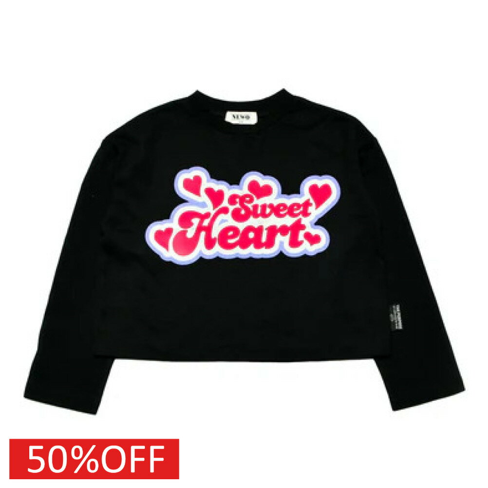 【ニードルワークス/ジュニア服/NEEDLEWORKS】 セール 【50%OFF】 【NeWo】レトロロゴショート丈Tシャツ ブラック