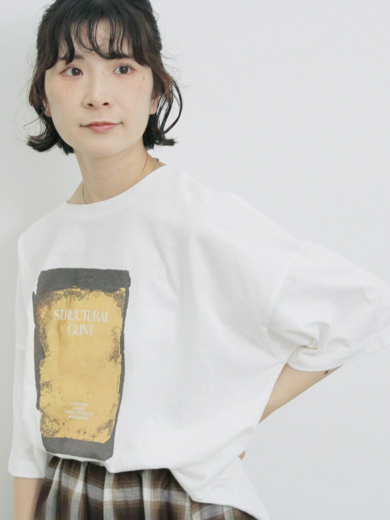 【SALE/50%OFF】【リンクコーデ/洗える】箔プリント7分袖Tシャツ Dessin デッサン トップス カットソー・Tシャツ ベージュ ブラウン ホワイト【RBA_E】[Rakuten Fashion]