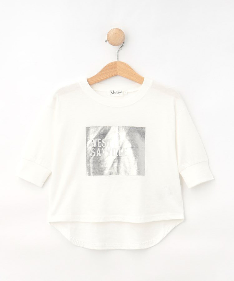 【SALE/50%OFF】Dessin 【リンクコーデ/洗える】箔プリント7分袖Tシャツ デッサン トップス カットソー・Tシャツ ホワイト ブラウン ベージュ