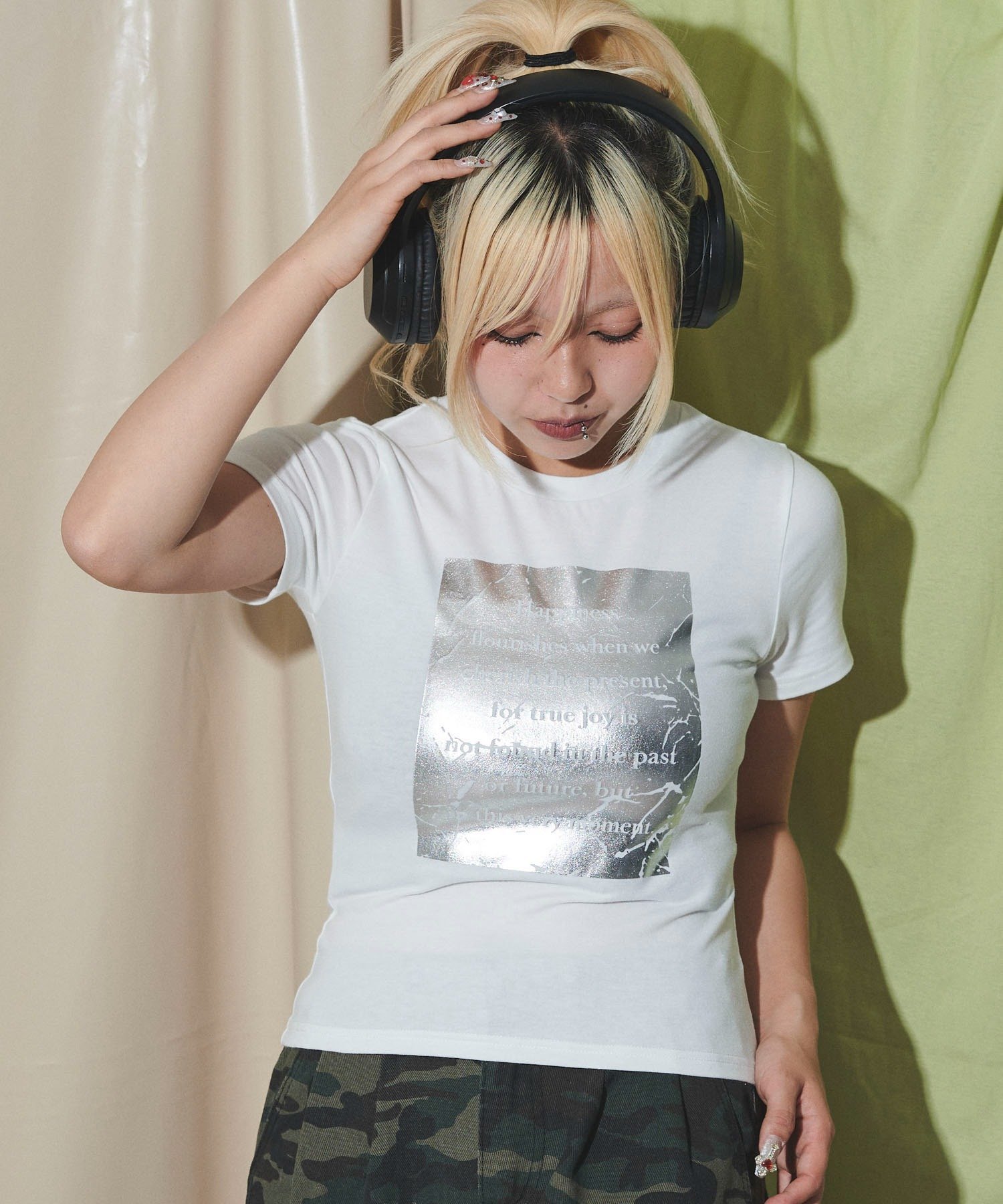 【SALE/50%OFF】WEGO LADY'S ボックスロゴ箔プリントピチT ウィゴー トップス カットソー・Tシャツ ブラック ホワイト