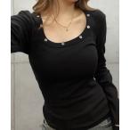 tシャツ UネックボタンリブロンT レディース