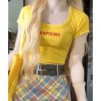 tシャツ Uネック ロゴ 半袖Tシャツ ショート丈 レディース