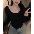 tシャツ ベーシック Uネック長袖Tシャツ レディース