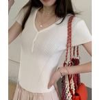 tシャツ ニットソーフレンチスリーブVネックトップス レディース
