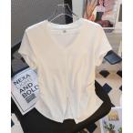 tシャツ Vネック フロント ツイスト フレンチスリーブ Tシャツ レディース