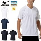 ミズノ メンズ ナビドライ Tシャツ Vネック 半袖 ワンポイント プラクティスシャツ 運動 スポーツウェア トレーニング 白 無地 通学 通勤 mizuno 32MAC191