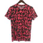 ルイヴィトン LOUIS VUITTON Tシャツ カットソー 半袖 Vネック グラフィック 総柄 S 黒 ブラック ピンク RW091T WOTS09JES