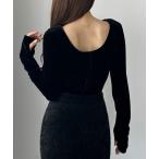 tシャツ 「取り外し可能パット付き」バックオープンベロアトップス レディース