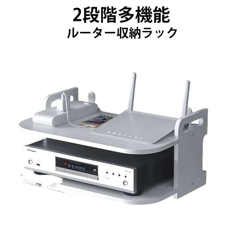 ルーター収納 壁掛け式 2段階 ウォールシェルフ 穴あけ不要 多機能WiFiルーター収納ラック テレビチューナー 配線すっきり収納 棚板 電源タップ収納 LAN 壁掛け式収納ラック 壁面ラック 壁掛け棚 賃貸ok かざり棚 石膏ボード アパート 壁掛けラック