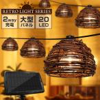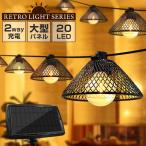 ソーラー ガーデンライト ストリングライト レトロ 籐ソケット 2Way充電 LED 20球 電球色 屋外 室内 防水 ソーラーライト おしゃれ 明るい ランタン