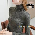 レース チュール トップス レディース ハイネック レースインナー シースルー 長袖 トップス 春夏秋 Tシャツ 重ね着 透け感 刺繍