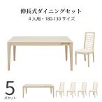 【11%OFFクーポン配布中!】 ダイニングテーブルセット 4人掛け 北欧 幅130 180 5点セット 伸長式 テーブル ダイニングチェア 鏡面 ツヤ 4人用 シンプル 白 おしゃれ 光沢仕上げ UV塗装 木製 ホワイト 白木目 伸