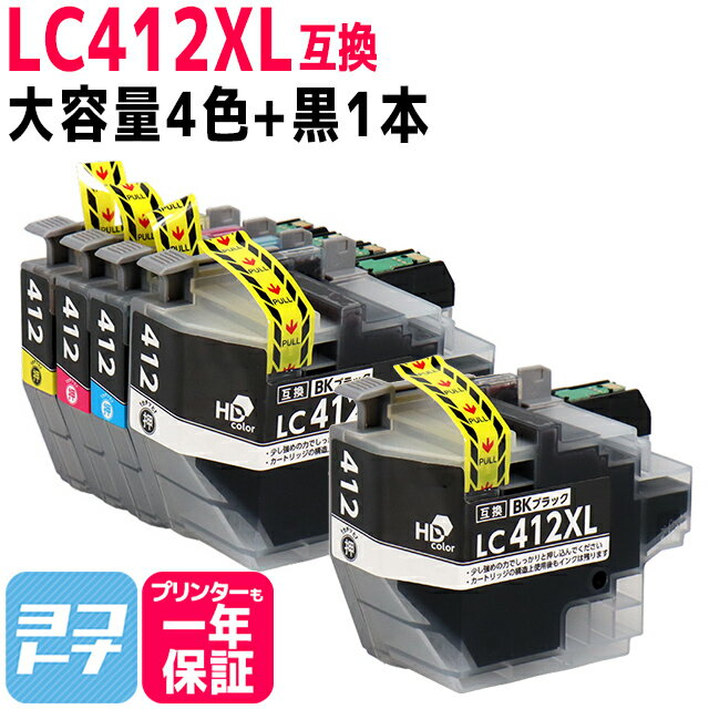 ★月末10%OFFクーポン★大容量タイプ LC412XL ブラザー用 4色+ブラック1本セット LC412XL-4PK 互換インク 内容:LC412XLBK LC412XLC LC412XLM LC412XLY 対応機種:MFC-J7300CDW MFC-J7100CDW インク 互換 送料無料 brother