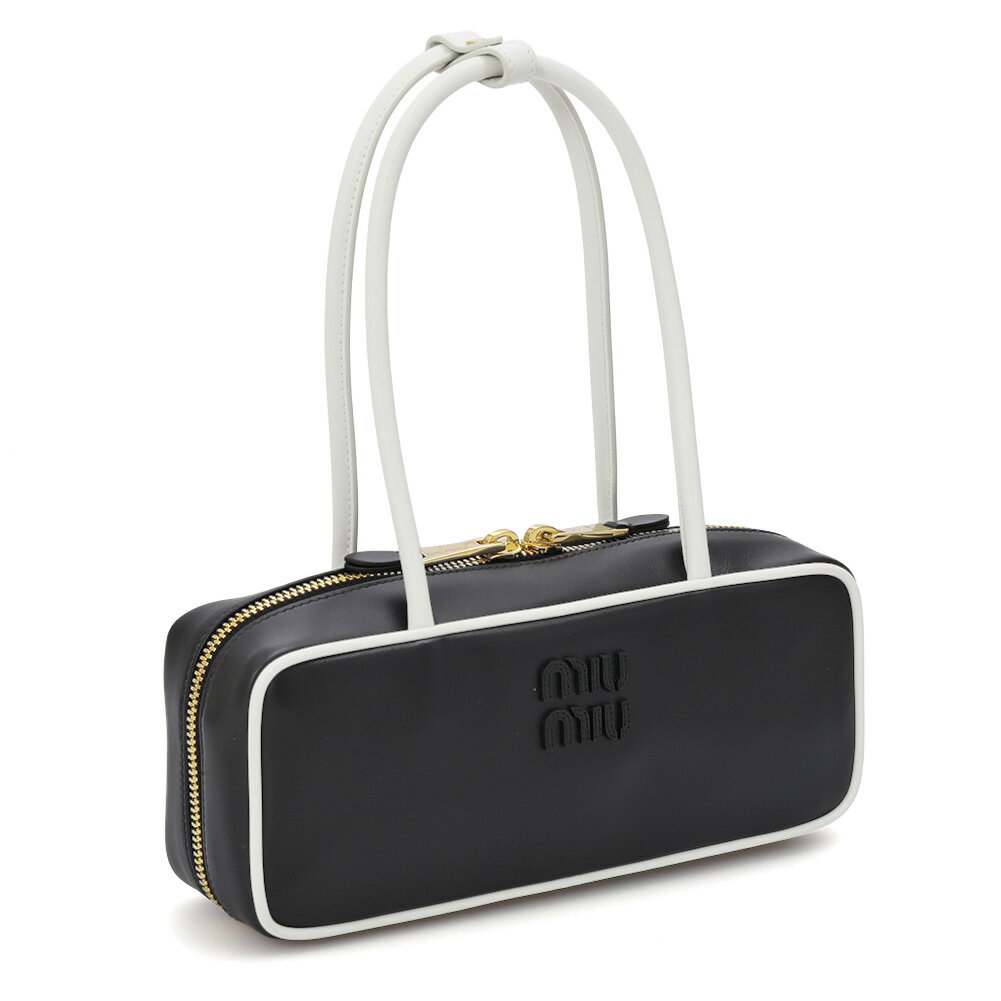 【スーパーSALE割引】【P5倍】ミュウミュウ/MIUMIU "ボー レザー バッグ" Wハンドルショルダーバッグ(ブラック×ホワイト) 5BB173 SOFTY PADDED (2IBP (V_OWM) NERO[返品OK]