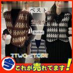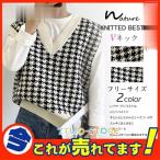 ニットベスト レディース 40代 ちどり 千鳥 チェック柄 ショット丈 上品 セーター韓国風 オシャレ シンプル 体型カバー 仕事 通勤 着痩せ 秋服