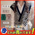 ニットベスト レディース 40代 ボーダー柄 vネック 上品 セーター韓国風 オシャレ シンプル 体型カバー 仕事 通勤 着痩せ 秋服 韓国風