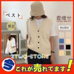 ニット ベスト レディース 無地 シンプルセーター シンプル トップス 無地 前開け 着痩せ ノースリープ ゆったり 秋服 ショット丈 おしゃれ