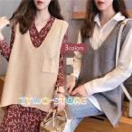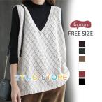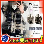 ニット ベスト レディース セーター チェック柄 トップス vネック ノースリープ 秋服 プルオーバー ショット丈 おしゃれ 重ね着 カジュアル 仕事